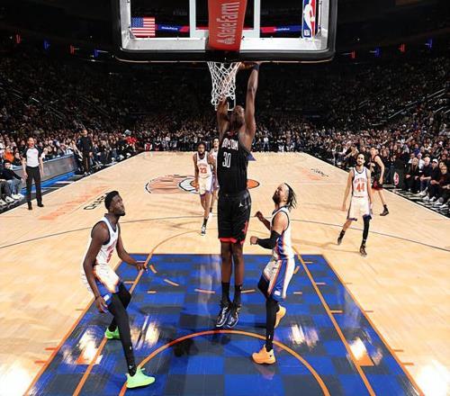 在此前的一場NBA常規(guī)賽中,主場作戰(zhàn)的紐約尼克斯在末節(jié)完成了大逆轉,以108比106險勝了休斯頓火箭。本場比賽后,在最近3場比賽中拿下了兩場勝利的尼克斯的戰(zhàn)績提升到了36勝21負,繼續(xù)排名東部第3位,與身前的波士頓凱爾特人的勝場差為1場,與身后的克利夫蘭騎士的勝場差為0場;而在最近3場比賽中輸?shù)袅藘蓤龅幕鸺膽?zhàn)績則是下滑到了34勝21負,繼續(xù)排名西部第4位,與身前的丹佛掘金的勝場差為1場,與身后的洛杉磯湖人和明尼蘇達森林狼的勝場差為0場。