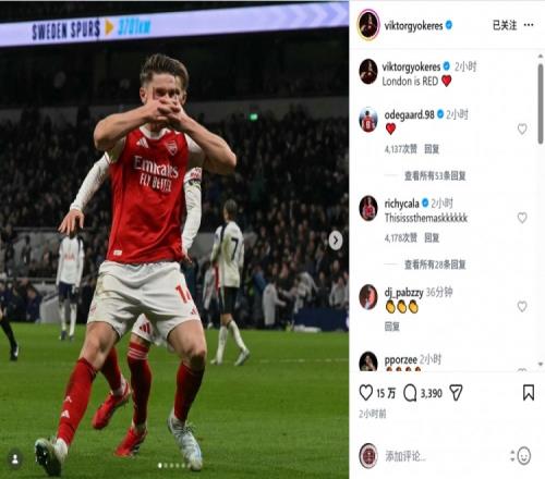 梅開二度笑傲德比!約克雷斯社媒慶祝勝利:倫敦是紅色的