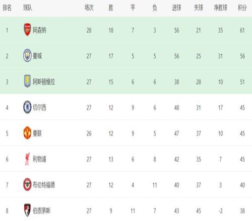 阿森納贏下這場(chǎng)比賽之后,鞏固了榜首位置。阿森納拿到61分,排名第2的曼城56分。阿森納在多賽一場(chǎng)的情況下,領(lǐng)先曼城5分,依然掌握爭(zhēng)冠主動(dòng)權(quán)。不過(guò),阿森納的爭(zhēng)冠之路面臨兩場(chǎng)重頭戲,能否贏下來(lái)或許將決定阿森納的命運(yùn),這兩場(chǎng)比賽分別對(duì)決切爾西和曼城。下一輪,阿森納將在主場(chǎng)惡戰(zhàn)切爾西。雙方在首回合交手踢成平局。阿森納要想贏下來(lái)恐怕不是一件容易的事情。