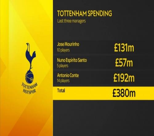熱刺在穆里尼奧和孔蒂時(shí)代投入3.8億英鎊,未能打破冠軍荒。