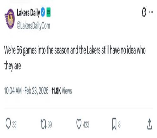 湖人媒體Lakers Daily也犀利點評到:“湖人已經(jīng)打了56場比賽,卻依舊沒有明確具體比賽方式。”