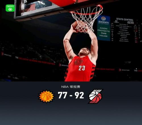第四節(jié),前半節(jié)太陽吉萊斯皮找到手感連續(xù)三分追至11分,開拓者格蘭特、卡馬拉得分止血,隨著克林根連得5分領(lǐng)先16分,比賽逐漸失去懸念,最終太陽77-92不敵開拓者。
