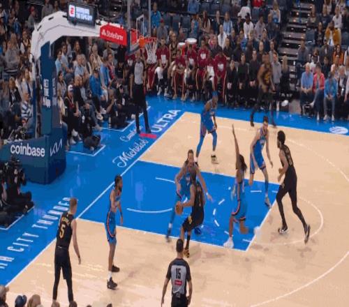 雷霆進(jìn)攻點(diǎn)著米切爾和哈登,盡力消耗
