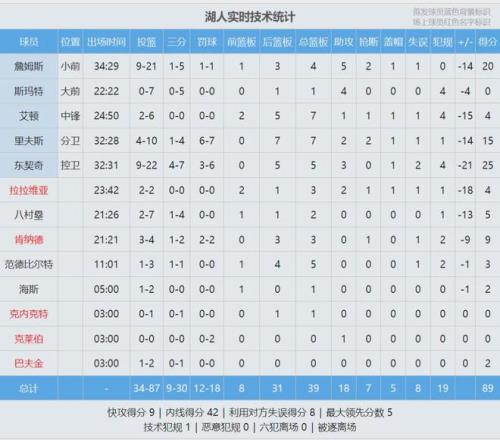 現(xiàn)場觀戰(zhàn)的湖人名宿詹姆斯-沃西賽后評論:“你們沒有表現(xiàn)出對湖人球衣的尊重!當(dāng)你意識到自己即將落敗,你就開始抱怨、發(fā)牢騷、把目光投向裁判?!焙说廖鞑康诹掷翘缮谖?。最后看看數(shù)據(jù):