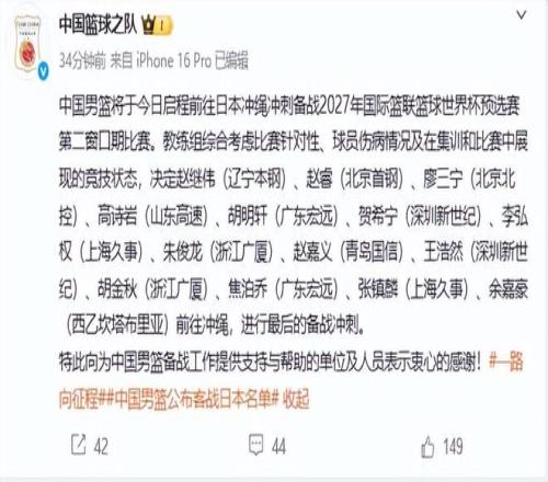 男籃公布大名單,兩人投籃命中率僅三成,球迷:男籃沒有人才了