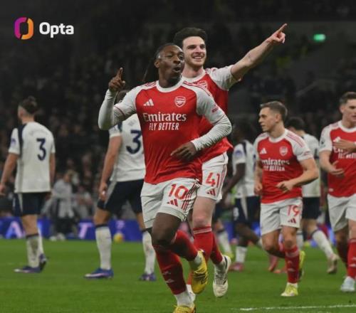 Opta統(tǒng)計(jì),只有皮雷(7)和阿德巴約(6)在英超比賽中代表阿森納對(duì)熱刺時(shí)比埃澤(5)進(jìn)球更多,埃澤的北倫敦德比聯(lián)賽進(jìn)球數(shù)已經(jīng)追平了亨利和范佩西。
