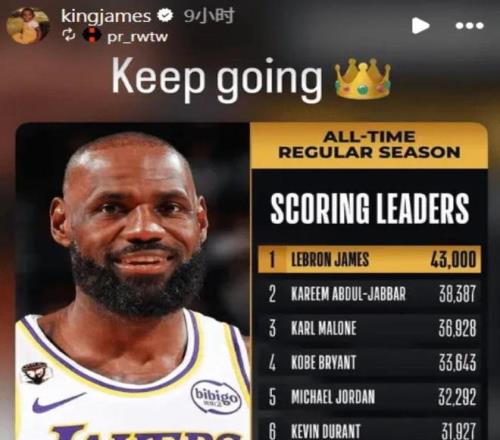生涯新突破!詹姆斯解鎖43000分唯一成就,興奮轉(zhuǎn)發(fā)里程碑時(shí)刻
