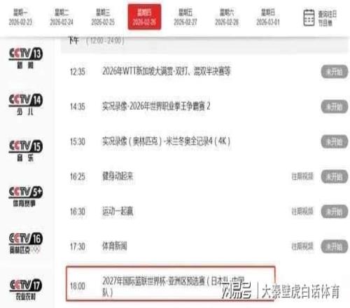 根據(jù)賽程顯示,世預(yù)賽中國男籃vs日本隊(duì)男籃的比賽將會(huì)在北京時(shí)間2月26日18點(diǎn)05分開打。