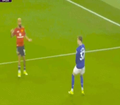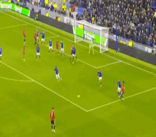 第30分鐘,迪亞洛右路突破被布蘭斯韋特拉拽,為曼聯(lián)拼得一個(gè)定位球機(jī)會(huì)。B費(fèi)45°傳中被解圍,達(dá)洛特禁區(qū)外停球順勢凌空抽射,直奔球門右上角,最終擦著立柱稍稍偏出。