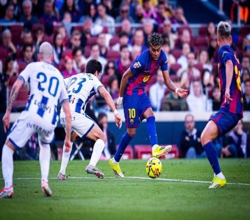 在對陣萊萬特的比賽中,亞馬爾取得了自己身披巴薩一線隊?wèi)?zhàn)袍的第100場勝利,成為巴薩歷史上在正式比賽中達(dá)到百勝最年輕的球員。