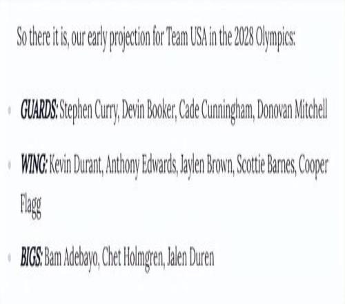 當(dāng)然,這并非官方名單,未來兩年在洛杉磯奧運開始前,很可能出現(xiàn)巨大變動。沒人知道庫里最終是否真的會出戰(zhàn),而健康狀況顯然會影響每一位競爭美國隊名額的球員。