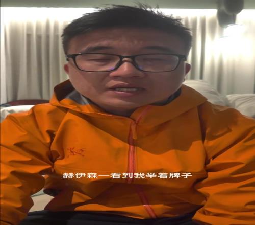 體育播報(bào)02月24日宣 社媒賬號(hào)為“GloryTag 榮耀印記”的西班牙當(dāng)?shù)厍蛎员硎?,赫伊森看到他舉牌子后一腳油門加速跑了。