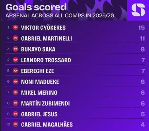 阿森納終于有一個(gè)能拿得出手的中鋒了,隊(duì)內(nèi)射手榜第一位的終于不是什么千奇百怪的人了!