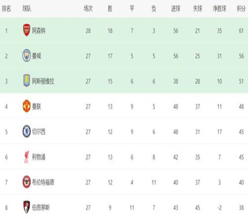 這場(chǎng)比賽也改寫了英超的爭(zhēng)四格局。曼聯(lián)憑借這場(chǎng)勝利,總積分達(dá)到48分,殺入了歐冠區(qū),排名第4,僅僅落后第3名的阿斯頓維拉3分,領(lǐng)先身后的切爾西和利物浦3分。