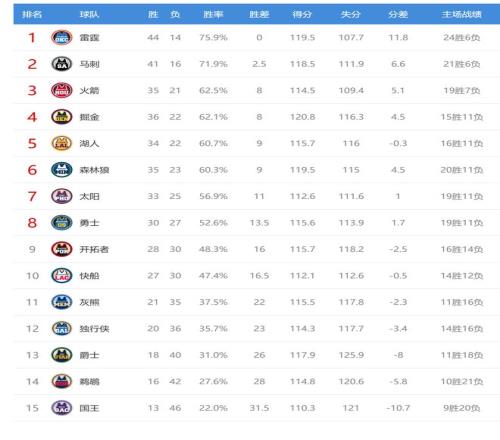 今日比賽后火箭、掘金排名互換,其他西部球隊(duì)排名不變。