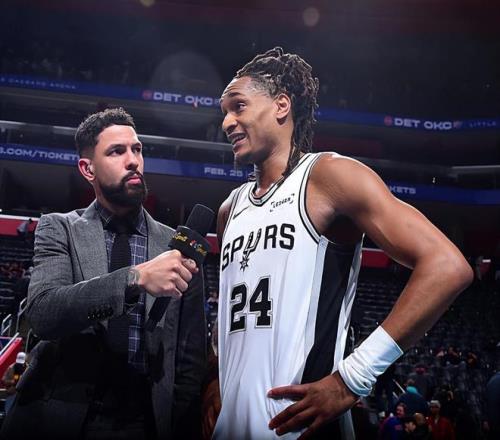 本場(chǎng)比賽中,馬刺的先發(fā)側(cè)翼大將德文-瓦塞爾(Devin Vassell)總算是打出了一場(chǎng)出色的表現(xiàn)。瓦塞爾全場(chǎng)出場(chǎng)36分19秒,投籃14中10,三分線外11中7,罰球2中1,得到了全場(chǎng)最高分28分外加2籃板4助攻1蓋帽的數(shù)據(jù),還有1次失誤和2次犯規(guī),正負(fù)值為+11。瓦塞爾在進(jìn)攻端終于發(fā)揮出了自己在外線投籃方面的能力,命中了大量的三分,展現(xiàn)出了應(yīng)有的水準(zhǔn)。除此之外,瓦塞爾也是能夠在傳球和組織方面起到一定的作用,他在進(jìn)攻端的功能非常全面。瓦塞爾在防守端的表現(xiàn)也是值得肯定的,同樣是起到了一定的作用的。瓦塞爾在本場(chǎng)比賽中也算是將自己的特點(diǎn)完全發(fā)揮了出來,為球隊(duì)的勝利提供了巨大的幫助。