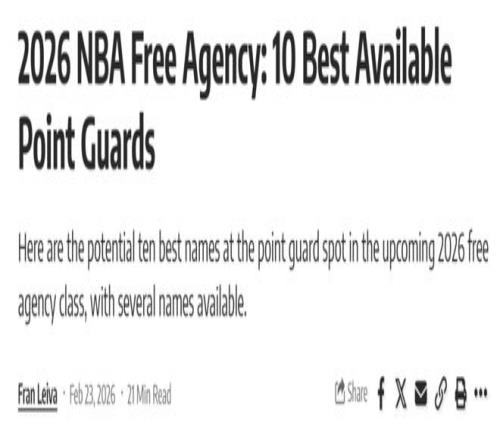 在常規(guī)賽進入后半段沖刺之際,美媒《FW》提前評選出26年休賽期自由市場10大控衛(wèi)名單,其中火箭隊范喬丹屈居第5,哈登意外落選。