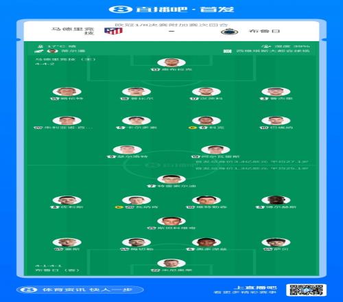 體育播報2月25日宣 歐冠1/8決賽附加賽次回合,馬競對陣布魯日,賽前首發(fā)公布。