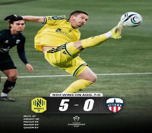 本賽季中北美冠軍杯第一輪,納什維爾對陣渥太華競技,納什維爾首回合2-0取勝,次回合5-0取勝,以7-0的總比分晉級16強(qiáng)。