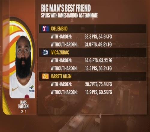 我就是體系!恩比德&祖巴茨&阿倫搭檔哈登得分命中率均顯著提升