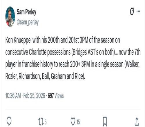 紀(jì)錄三:克努佩爾成為本賽季首位命中200記三分的球員;