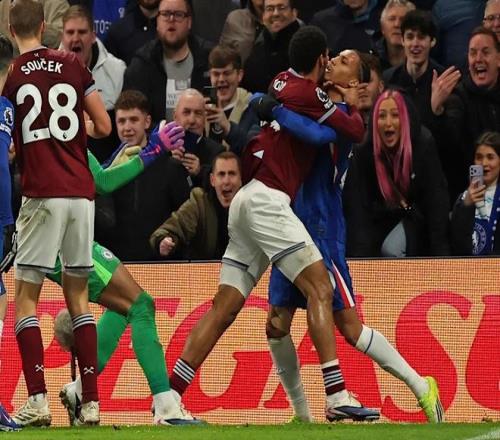 這場倫敦德比火藥味十足。切爾西在2-0領(lǐng)先的情況下被逆轉(zhuǎn),補(bǔ)時階段以2-3落后,情緒徹底失控。比賽末段,西漢姆替補(bǔ)特拉奧雷與切爾西邊衛(wèi)庫庫雷利亞在角球區(qū)爭搶,沖突就此爆發(fā):
