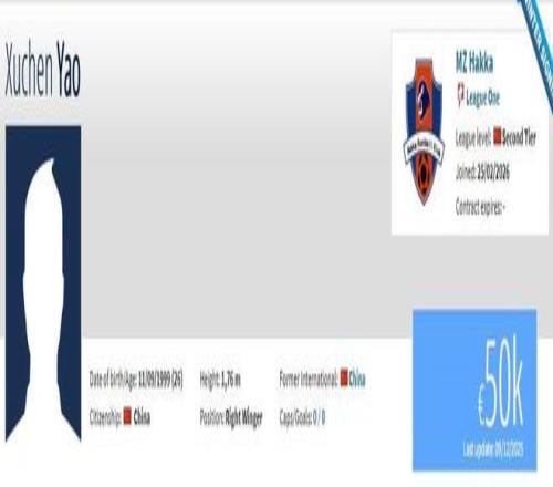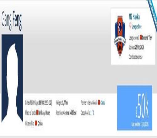 馮剛現(xiàn)年32歲,司職中場,此前球員效力于青島西海岸,期間共出場60次,打進2球助攻8次。現(xiàn)在他在德轉(zhuǎn)上的身價為5萬歐元。