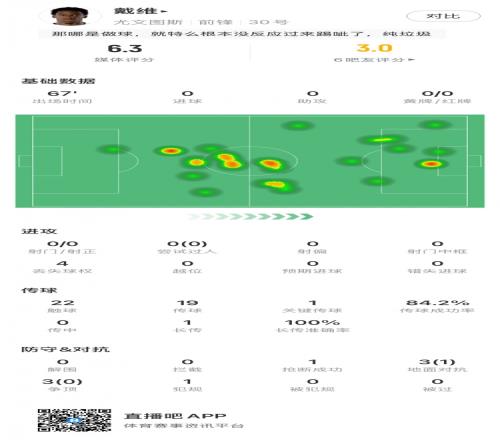 碌碌無為,戴維全場數(shù)據(jù):射門過人預(yù)期進球等數(shù)據(jù)掛零,評分6.3