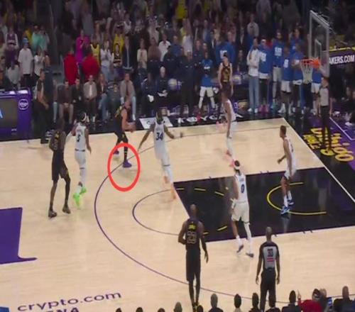 第一次漏判發(fā)生在距離比賽結(jié)束還有1分7秒,東契奇在左腳觸地時完成合球,合球后多走了兩步以上,構(gòu)成走步違例。裁判沒有響哨,這是一次漏吹的走步違例,湖人獲利,魔術吃虧。