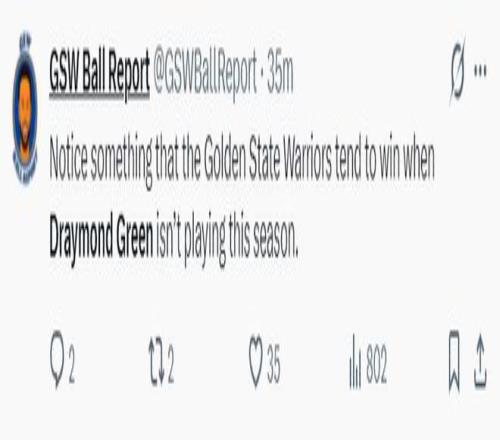 但勇士媒體:注意到一個現(xiàn)象,本賽季當?shù)吕酌傻?格林沒有上場時,勇士隊往往會獲勝。