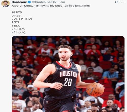 此役阿爾佩倫-申京表現(xiàn)非常出色,首節(jié)9分鐘里他就已經(jīng)3中3拿到6分4籃板4助攻,次節(jié)9分鐘里更是6中3+三分1中1拿到12分5籃板3助攻,半場(chǎng)18分9籃板7助攻1搶斷1蓋帽1失誤,真實(shí)命中率77.3%,正負(fù)值+24。國(guó)王的內(nèi)線群根本無法限制他分毫。