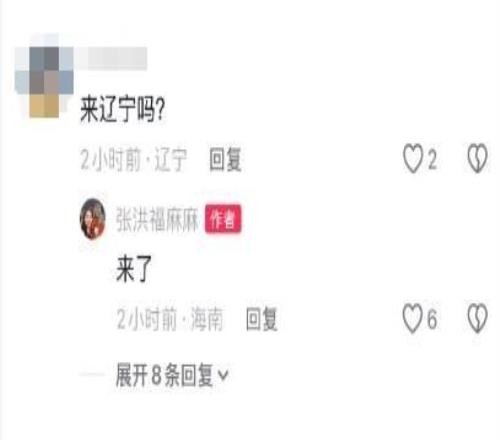 有球迷在張洪福母親的抖音評論區(qū)留言:來遼寧嗎?隨后張洪福母親回復:來了。
