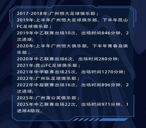 蔡明民司職后腰,出自廣州恒大青訓(xùn)體系,長期接受系統(tǒng)化、職業(yè)化的訓(xùn)練,技術(shù)基礎(chǔ)扎實,比賽理解成熟。進(jìn)入職業(yè)賽場后,他在不同階段、不同球隊中持續(xù)適應(yīng)多樣化的戰(zhàn)術(shù)體系與比賽強度,在競爭中完成成長,也在實戰(zhàn)中不斷校準(zhǔn)自身定位。從中乙到更高水平聯(lián)賽的歷練,使他在節(jié)奏把控、位置選擇與比賽穩(wěn)定性方面逐步形成個人特點。
