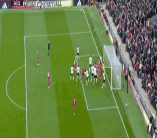 第43分鐘利物浦獲得右側(cè)角球機(jī)會,?;倏撕簏c擺渡給了買卡利斯卡,后者直接凌空抽射建功,將比分改寫為了3-0,利物浦也成為了曼聯(lián)之后,第二支英超單場比賽上半場利用角球打進(jìn)3球的球隊。
