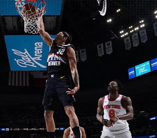 常規(guī)賽,掘金主場(chǎng)103-142慘敗尼克斯。