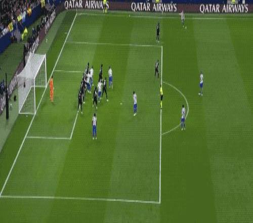 第23分鐘,格列茲曼開(kāi)出任意球,維卡里奧已經(jīng)做出不可思議的撲救,但勒諾爾芒補(bǔ)射破門(mén)。