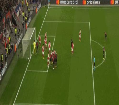 第7分鐘,勒沃庫(kù)森球員科法內(nèi)禁區(qū)弧頂遠(yuǎn)射被阿森納門(mén)將拉亞沒(méi)收。