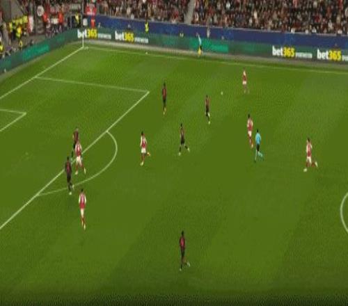 第46分鐘,勒沃庫(kù)森球員格里馬爾多主罰角球開(kāi)出到后點(diǎn),安德里希頭球破門(mén),勒沃庫(kù)森1-0阿森納!