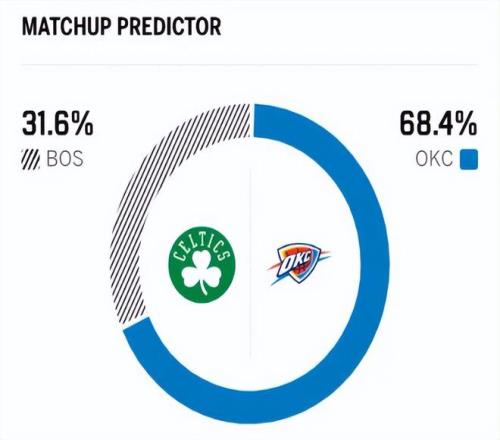 賽前,美媒ESPN對本場比賽進行了勝率預(yù)測,凱爾特人勝率僅有31.6% ,雷霆勝率則高達68.4% ,差距非常明顯。