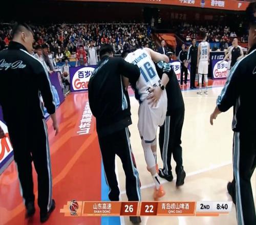 次節(jié)再戰(zhàn),青島男籃利用罰球迫近比分,王奕博上籃不慎扭傷。陶漢林、克里斯的內(nèi)線優(yōu)勢明顯,威瑟斯龐利用個人能力僵持局面??死锼埂㈢耆麪栠B續(xù)暴扣,分差拉開到兩位數(shù)。約瑟夫楊連中兩記高難度三分,半場比賽結(jié)束,青島男籃將分差縮小到8分。