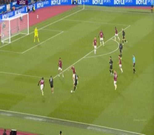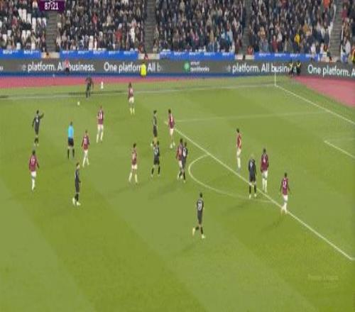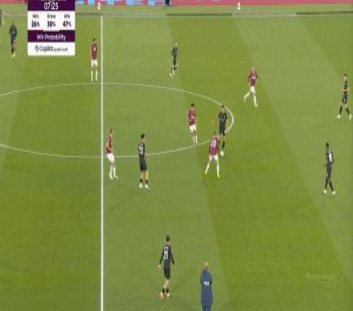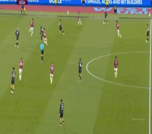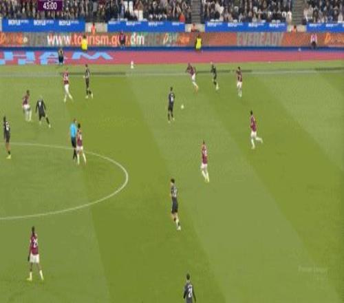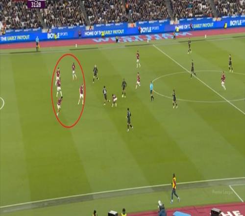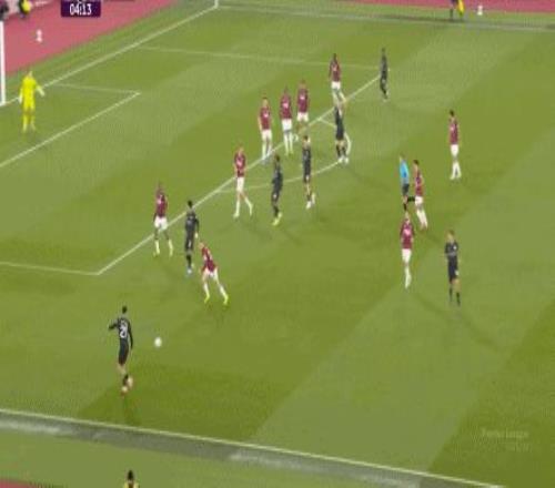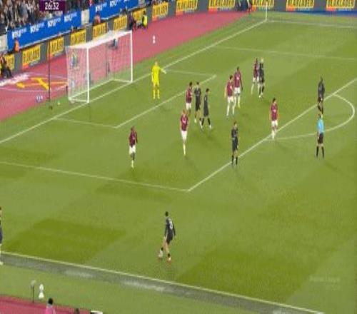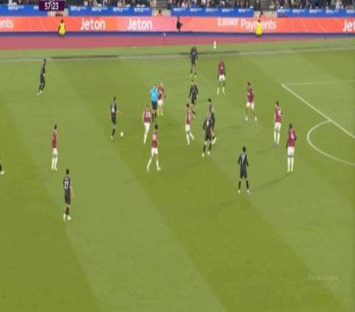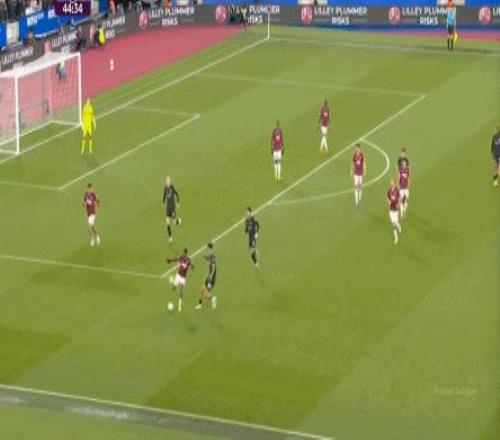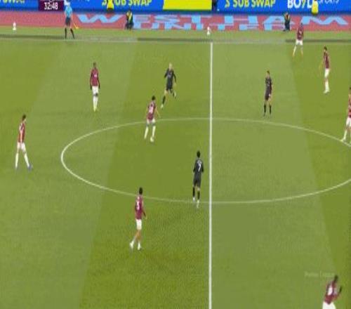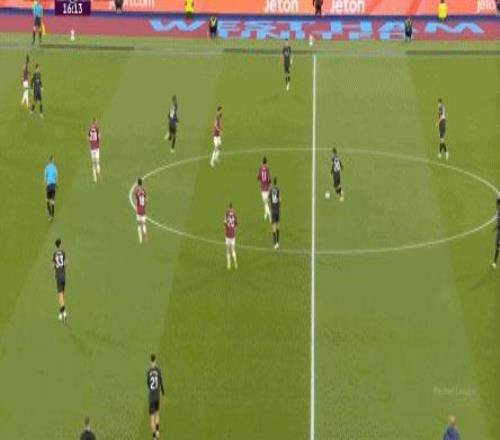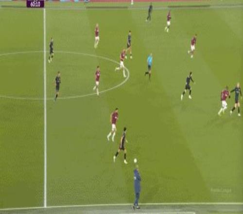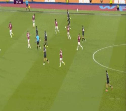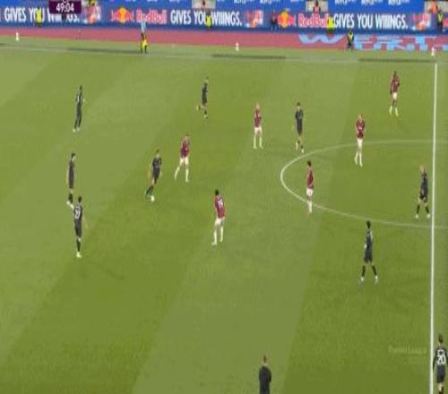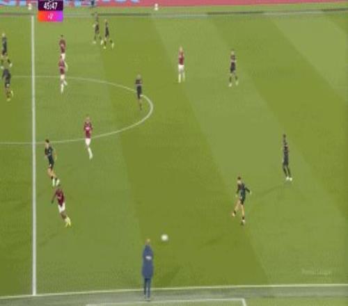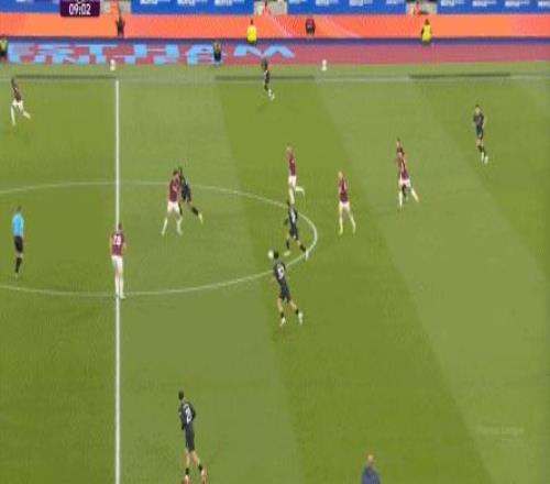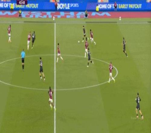 所以,第10分鐘這次進(jìn)攻打得不錯(cuò),只是最后一傳被堵住,但這樣的成功例子,前30分鐘只有這么一次,畢竟西漢姆聯(lián)中場空虛也就這么一次: