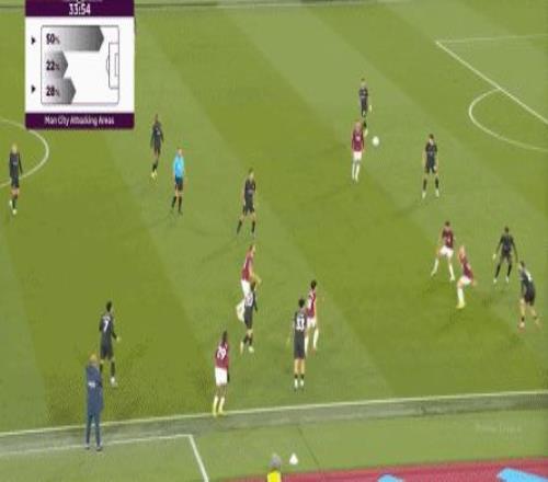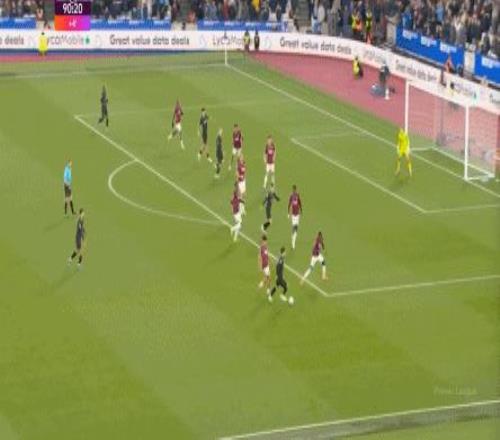 當(dāng)然了,也不是完全沒有,比如在常規(guī)時(shí)間臨近結(jié)束時(shí),曼城還是打出了兩次傳中,就打出了西漢姆聯(lián)的慌亂,從而讓進(jìn)球看起來接近了一些: