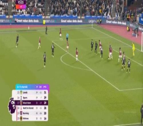 就在這次角球進(jìn)攻里,西漢姆聯(lián)扳平比分: