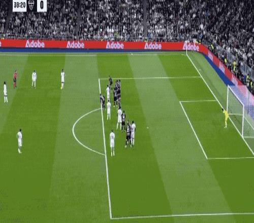 第40分鐘,威尼修斯主罰定位球橫敲,巴爾韋德遠(yuǎn)射被門將撲出,禁區(qū)內(nèi)一片混亂之中,呂迪格機(jī)敏跟進(jìn)凌空掃射破門,皇馬1-0取得領(lǐng)先,伯納烏瞬間沸騰。