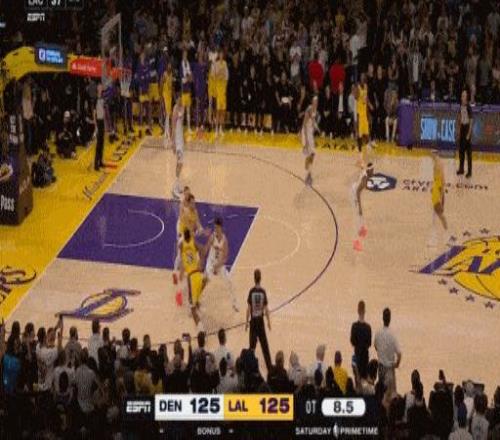 最后0.5秒,東契奇制勝中投命中,最終全場(chǎng)比賽結(jié)束,湖人以127-125戰(zhàn)勝掘金。
