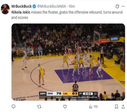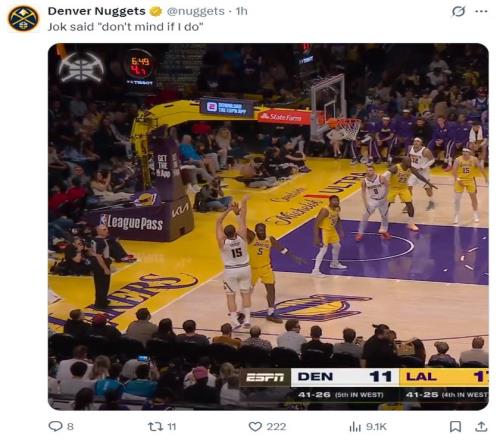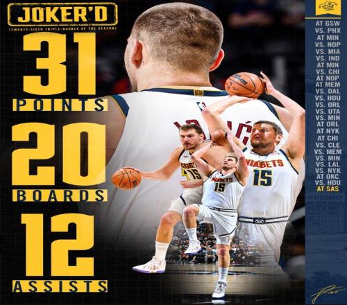 北京時間3月15日,掘金以125-127惜敗湖人。此役約基奇罕見的暴扣了,而且他拿到了本賽季第27次三雙,也是職業(yè)生涯第191次三雙,下半場也是依靠約基奇的發(fā)揮抹平17分的差距,末節(jié)被里夫斯神奇拖入加時賽,而加時賽約基奇被艾頓打爆,最終東契奇準絕殺。