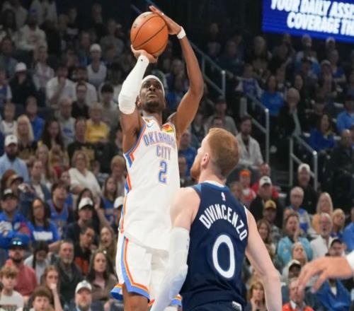 但是巧了,雷霆本賽季有兩大苦主,一支就是馬刺,馬刺本賽季面對雷霆4勝1負(fù);另外一支就是森林狼了,森林狼本賽季打雷霆2勝1負(fù),最近兩次相遇森林狼全部取勝。森林狼此前戰(zhàn)績41勝26負(fù),暫列西部第五,他們是一支起伏很大的球隊(duì),能連續(xù)慘敗魔術(shù)+湖人+快船,也能壓制住雷霆,說白了球隊(duì)并不穩(wěn)定。但本場比賽的過程,遠(yuǎn)在意料之外,回顧一下過程!開場雷霆早早發(fā)力,霍姆格倫繞出來扔三分,亞歷山大飛身上籃,霍姆格倫和多特多點(diǎn)開花,森林狼打了5分鐘,只有蘭德爾命中一記三分。