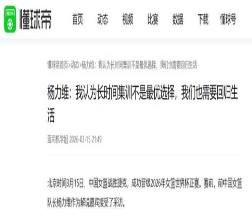 作為前女籃隊長的楊力維,擔任解說嘉賓時接受了采訪,表示:“我們長時間的集訓,我認為它不是個最優(yōu)的選擇,我們需要在一起磨合,但是我們也需要回歸生活,我們需要有更多的時間打磨自己的個人技術(shù),然后才是團隊的組合,以及用高水平的比賽來檢驗訓練。這樣的一個過程是良性的,而不是一直持續(xù)讓我們處于在一個封閉的、閉塞的一個狀態(tài)當中。我覺得是在長時間的一個狀態(tài)下是沒有主觀能動性的,也是缺少饑餓感的?!?/p>