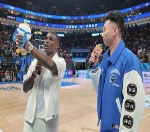 法比奧現(xiàn)身首鋼男籃主場觀賽,中場休息時帶領(lǐng)觀眾為球隊加油