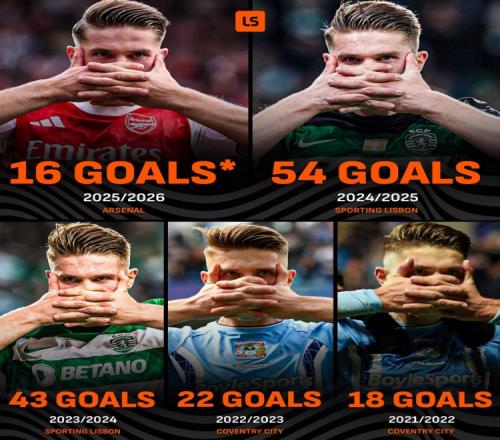 體育播報(bào)3月17日宣 加盟阿森納之后,約克雷斯曾一度受到質(zhì)疑,但瑞典前鋒逐漸找到狀態(tài)并展示出不錯(cuò)的進(jìn)球效率。本賽季迄今為止,他已經(jīng)在各項(xiàng)賽事打進(jìn)16球。近5個(gè)賽季,約克雷斯均至少打進(jìn)15球,場均進(jìn)球數(shù)達(dá)到了0.72。